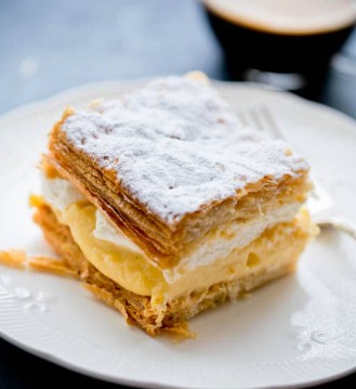 Ciastko składa się z dwóch warstw cienkiego, złocistego ciasta francuskiego, które po upieczeniu staje się wyjątkowo lekkie i chrupiące. Wewnątrz, między warstwami ciasta, znajduje się krem na bazie świeżej śmietany i wanilii, który jest nie tylko delikatny, ale i pełen głębi smaku. Kremówka jest zazwyczaj udekorowana odrobiną cukru pudru, co podkreśla jej elegancki wygląd i sprawia, że wygląda jeszcze bardziej apetycznie.