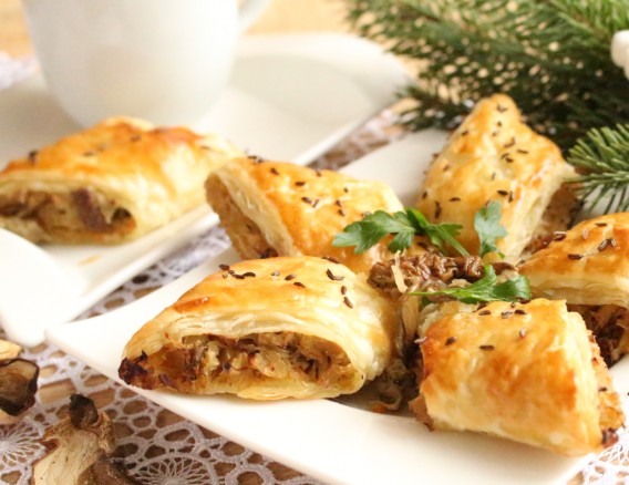 Każde ciastko jest starannie przygotowywane z cienkiego, maślanego ciasta francuskiego, które po upieczeniu staje się lekkie, chrupiące i pełne aromatu. Nadzienie to wyrazista mieszanka duszonej kapusty, wzbogaconej o grzyby leśne, które nadają całości intensywny smak i zapach, podkreślony delikatnymi przyprawami. W połączeniu z kruchym ciastem, ciastka te stanowią wytrawną przekąskę idealną na przyjęcia, jako dodatek do zup, czy na ciepłe danie w chłodniejsze dni.