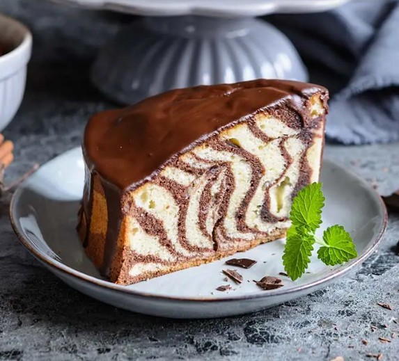 Zebra w czekoladzie od Cukierni Roberta Dybalskiego w Łodzi to wypiek, który zachwyca nie tylko smakiem, ale również swoim niepowtarzalnym wyglądem. Warstwowe ciasto o charakterystycznym wzorze pasków łączy w sobie lekkość i delikatność, a jednocześnie stanowi doskonałą harmonię smaków wanilii i kakao, zamkniętą w aksamitnej czekoladowej polewie.